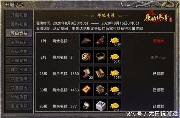 在刚刚开服的时候等级提升是很重要的,因为会开放等级竞技。等级最先提升的玩家可以在等级竞技榜免费领取高额奖励,其中最值得关注的就是“斗笠”。斗笠装备在开服当天是很稀有的装备,而且一转、二转奖励只有5名先达到要求等级才能领取,晚了就没有了,而且还能获取能更大概率出好装备的珍贵藏宝图。