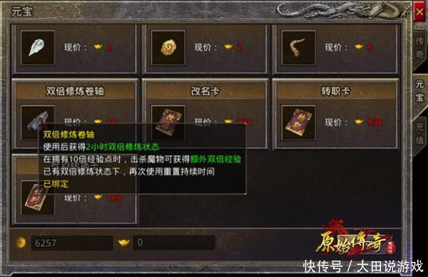 玩家进入游戏后会获得每日赠送的38点10倍经验点,这时候先去做主线任务,一直到解锁了活动和首冲。然后就去商城元宝处购买一个双倍修炼卷轴,双倍修炼卷轴能使打怪被10倍经验点加成获取的10倍经验再次翻倍。通俗点说就是,在有10倍经验点的且有双倍的状态下是获取20倍的打怪经验。
